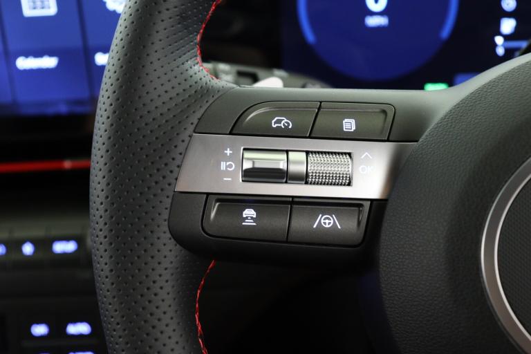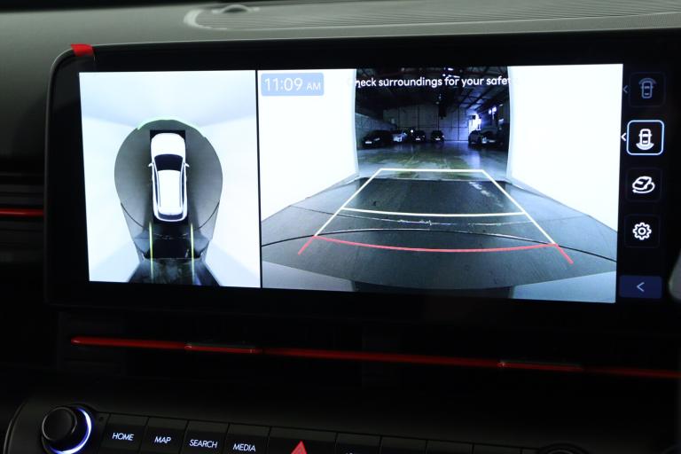 ..12.3'' touchscreen centre console display satellite navigation with bluelink, live services and mapcare, Blind spot collision avoidance assist, Blind spot view monitor, Bluetooth connectivity with voice recognition, Driver status monitor (DSM), Driver supervision instrument cluster with 12.3'' LCD display, eCall emergency call system, Feature on demand - Enabled, Forward collision avoidance assist (FCA 1.5) - Car,pededstrian,cycle and junction turning, Front parking sensor, HDA - Highway Drive Assist Level 1.5, Head up Display, Height adjustable power tailgate, Intelligent speed limit assist, Lane follow assist, Lane keep assist, Leading vehicle departure alert (LVDA), Parking Collision Avoidance Assist-Reverse (PCA-R), Parking distance warning - side, Parking system with rear camera and guidance system, PAS, Rear cross traffic collision avoidance (RCCA), Rear parking sensor, Roadside assistance, Safe exit warning (SEW), Smart cruise control with stop and go functionality, Surround view monitor, Wireless phone charging pad, Wireless Smartphone Integration includes Apple CarPlay and Android auto, Charging cable - 7 pin type 2, Electric active sound design, Emergency 3 pin connector charging cable (ICCB), 2 front USB C and 2 rear USB C charging points, Bose Premium Audio system with 7 premium speakers + subwoofer, DAB Digital radio, Steering wheel audio,phone and cruise controls, Auto dimming rear view mirror, Automatic headlights with dusk sensor, Automatic windscreen wipers with rain sensor, Body colour exterior door handles, Body coloured wheel arch inserts, Door mirror LED indicator lights, Electric front windows with anti-trap mechanism and one touch control, Electric rear windows, Electrically adjustable and heated door mirrors, Front and rear LED turning signals, Frunk - under the bonnet storage, Gloss black door mirrors, Horizon centre LED DRL, LED projector headlights, LED upper and lower rear lights, N Line interior and exterior styling, Power folding door mirrors, Privacy glass - Rear windows and tailgate, Rear roof spoiler with integrated LED brake light, Rear side wing doors, Rear wiper, Roof rails, Satin finished beltline, Solar glass with front door glass and windscreen, Tinted glass in front and rear doors, V2L (Vehicle to Load) - Inside, Windscreen auto defog function, 12V power outlet in front console, 2 zone climate control, 3 seat bench in 2nd row, 40/20/40 split folding rear seat, Adjustable head restraints, Aluminium pedals, Ambient