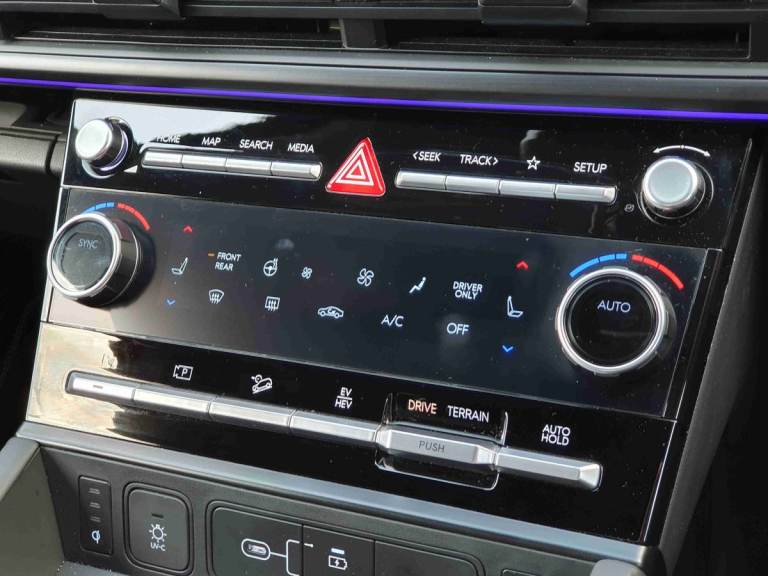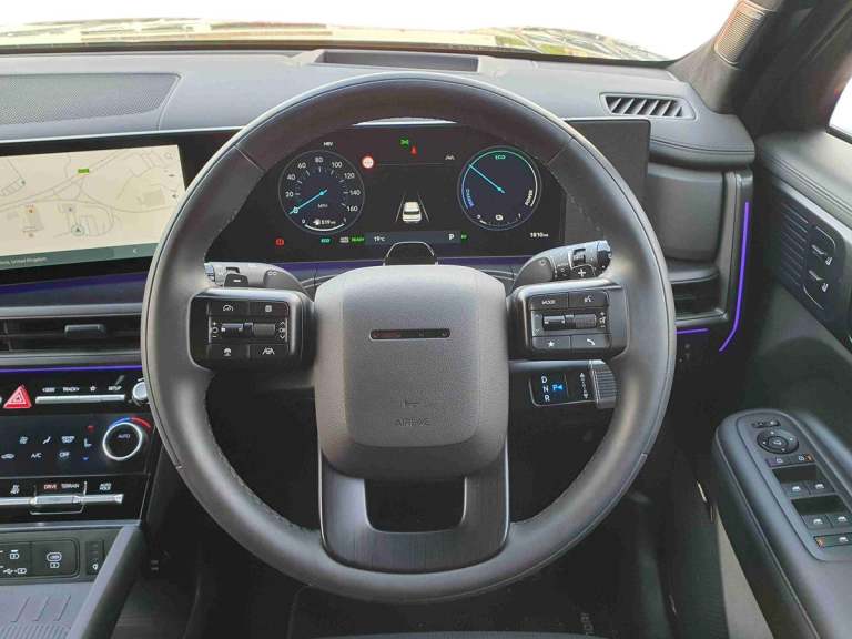 ..12.3'' Drivers supervision instrument cluster with LCD display, 360 degree parking sensors, Blind spot collision avoidance assist (BCA), Blind spot view monitor (BVM), Bluelink and Wireless Apple Carplay/Android Auto, Bluetooth connectivity with voice recognition, Drive mode selector, Driver status monitor (DSM), Dual wireless phone charging pad, Emergency services call system, Forward collision avoidance assist (FCA 2.0), Head up Display, Highway drive assist 2 (HDA 2), Intelligent speed limit assist (ISLA), Lane departure warning system (LDW), Lane Follow Assist 2 (LFA 2), Lane keeping assist (LKA), Low washer fluid warning, Navigation based smart adaptive cruise control with stop and go, Over the air software updates (OTA), Parking Collision Avoidance Assist-Reverse (PCA-R), Power assisted steering, Remote smart parking assist, Safe exist assist (SEA), Smart electric tailgate with hand's free opening function, Surround view monitor, Self levelling suspension, Shift by Wire Gear Selector (SBW), 12.3'' Touchscreen display with satellite navigation, 2nd Row USB C Ports x2 Charging, 3rd Row USB C Ports x2 Charging, Front USB C port 1 charging and 1 data/charging, Premium BOSE sound system with 12 speakers and subwoofer, Steering wheel audio,phone and cruise controls, Automatic headlights with dusk sensor, Automatic windscreen wipers with rain sensor, Black Styling (Skid plate, Fender upper garnish, Door side garnish, C/D pillars, Rear bumper moulding, DLO), Body colour bumpers, Digital centre mirror, Dynamic welcome light, Electric adjustable/heated/auto power folding door mirrors, Front and rear electric windows, Heated rear window, Hidden C pillar assist handle, Hidden rear wiper, High beam assist, LED daytime running lights, LED Headlights, LED indicator lights, LED indicators in door mirrors, LED positioning lights, LED taillights, LED third brake light, Manual rear door blinds, Rear side wing doors, Rear windows and tailgate privacy glass, Roof rails, Solar glass windscreen and front windows, Windscreen auto defog function, Windscreen with acoustic film, 2nd and 3rd row center armrest with cupholder, 3rd row head restraints, Centre rear head restraint, Driver and front passenger premium relaxation seats, Dual zone climate control air conditioning, Electrically adjustable front seats with 2 way electric lumbar support, Front head restraints, Front seats with memory, Heated front seats, Heated rear seats, Height and reach electrically adjustable