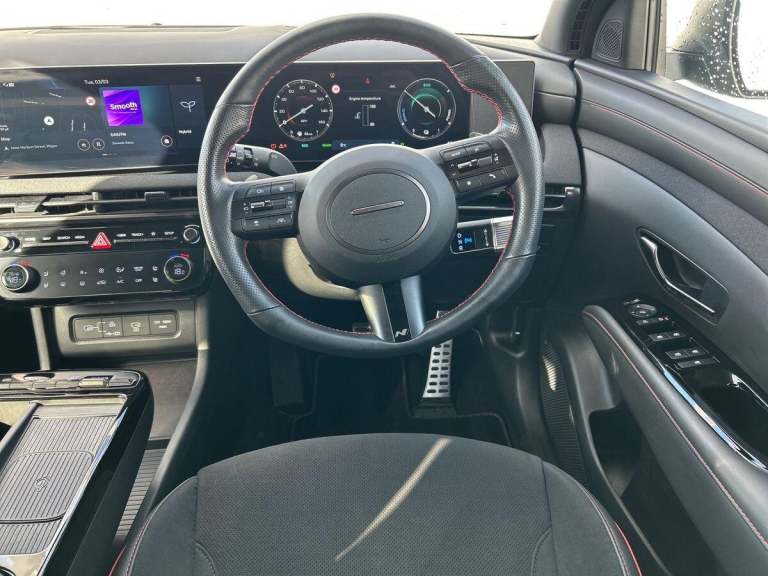 Available for you to view and test drive or reserve online, this Hyundai TUCSON N Line S SUV Petrol Hybrid finished in Black comes with Full Hyundai service history upon purchase and Low Mileage, making it a highly sought-after car. This vehicle comes packed with features, but a few we think youd really like include: Brighten up your cabin with a sunroof that offers natural light and an airy feel, enhancing visibility and mood while making every ride feel more spacious and inviting. Heated/Vented seats make every journey more enjoyable, reducing the discomfort of Cold or Hot mornings or winter/Summer commutes. Allowing you to stay focused on driving while staying snug and relaxed. Other features include Wireless Phone Charging Pad, Heads-Up Display, Premium Krell Speakers, Integrated Sat Nav, and more. Above are only a few of our favourite features, but we know youll find your own when you get hands-on in branch. Why buy from us Heres our 5 point promise to you: · HPI history check · A thorough multi-point inspection · Full showroom valet before delivery · Tyres, brakes and service to schedule You can also take advantage of our Chorley Care service that allows you to purchase additional warranty for total peace of mind. If youve got a part exchange, wed love to take it off your hands. Well do a professional appraisal and give you the best price guaranteed. You can also see how much your car could be worth via a free valuation tool on our website. Once youre happ...