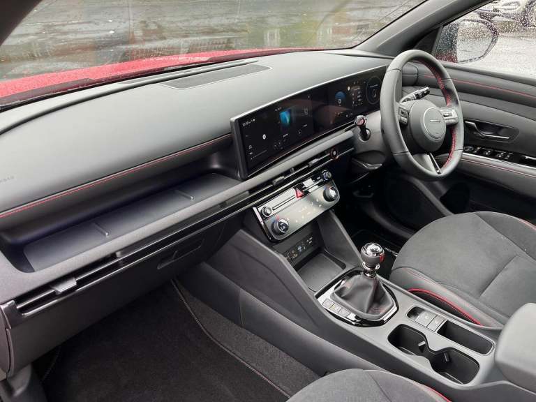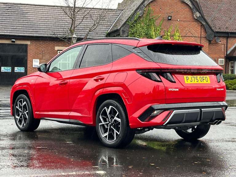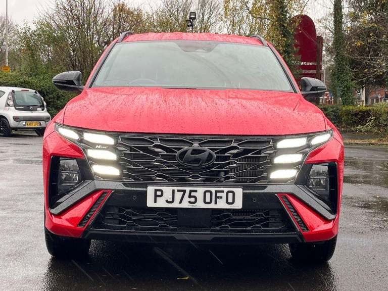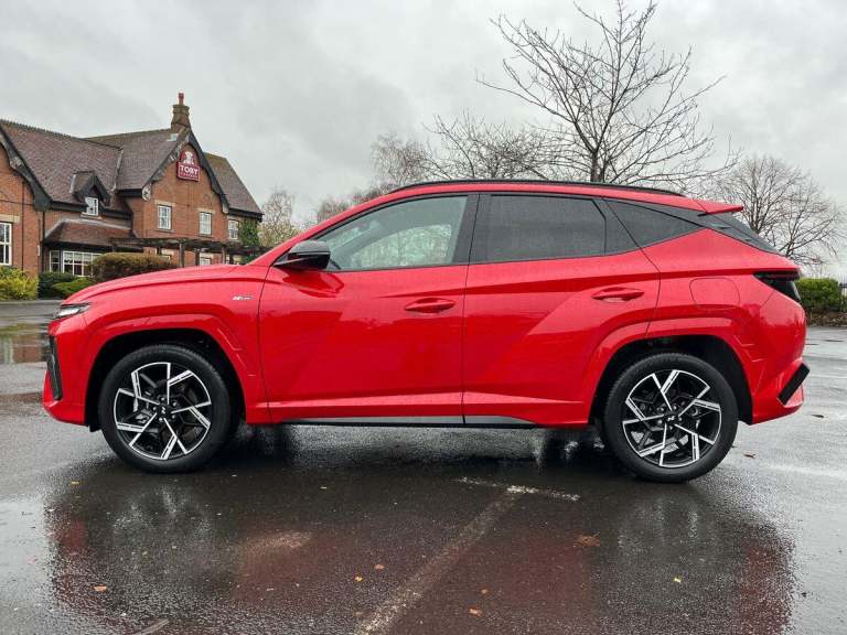 Available for you to view and test drive or reserve online, this Hyundai TUCSON N Line finished in Red is pre-registered, coming with delivery mileage only, presenting a great opportunity to own a nearly-new car with a massive saving! Its Hyundai manufacturer approved too, ensuring peace of mind. This vehicle comes packed with features, but a few we think youd really like include: A 12.3"" Sat Nav to get you from A to B effortlessly. Wireless Charging Pad for hassle & wire-free charging every time. Heated Part Leather & Alcantara Seats for the comfiest and warmest commute ever and Apple CarPlay with Android Auto to stream your favourite songs from your favourite devices. Above are only a few of our favourite features, but we know youll find your own when you get hands-on in branch. If youve got a part exchange, wed love to take it off your hands. Well do a professional appraisal and give you the best price guaranteed. You can also see how much your car could be worth via a free valuation tool on our website. Once youre happy, if youd like to purchase the car on finance, we have a range of flexible and affordable options with competitive APR rates that are 100% tailored to your needs. Lastly, if you want to collect your car in person, let us know the best date and time convenient for you and well have it ready! But if you cant make it to us for any reason, no problem, we can deliver to your door for free within 30 miles with a small additional charge for every...