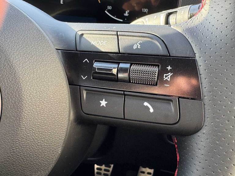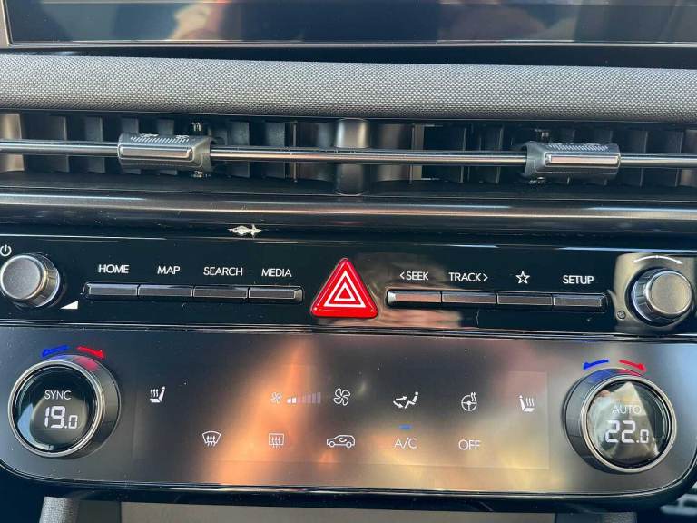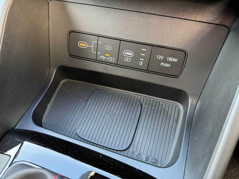 ..Exterior Features, Adjustable intermittent front windscreen wipers with aero wiper blade, Automatic defog system, Automatic windscreen wipers with rain sensor, Front and rear electric windows with anti-trap mechanism and one touch control, Privacy glass - Rear windows and tailgate, Rear wash/wipe with intermittent wipe setting, Tinted glass with windscreen shade band, Body colour bumpers, Body colour exterior door handles, Body coloured wheel arches, Glossy black bumper mouldings, Rear side wing doors, Roof rails, Soft touch rear door paneling, Automatic headlights with dusk sensor, Follow me home headlights, Front fog lights, LED 3rd brake light, LED daytime running lights, LED Headlights, LED rear lights, Positioning Lights - LED, Safety, Anti-lock brake system (ABS), Brake assist function, Downhill brake control, Electric parking brake, Electronic stability control, Hill start assist control (HAC), Multi-Collision braking, Traction control, Vehicle stability management, Cruise control, Drive mode selector, Driver attention warning, Emergency stop signalling system, Forward Collision Avoidance Assist (FCA) - Car, Pedestrian and Cycle, Forward Collision Avoidance Assist Junction Turning (FCAJX), Front and rear parking sensors, Intelligent speed limit assist, Lane follow assist, Lane keep assist, PAS, Rear camera and guidance parking system, Auto dimming rear view mirror, Body colour door mirrors with integrated indicators, Electrically adjustable, heated and power folding door mirrors, 3x3 point rear seatbelts, Active bonnet, Airbag - Front, front side, curtain and centre front airbags, Childproof rear door locks, Curtain airbag roll over sensor, Front and rear seatbelt reminder, Front passenger airbag deactivation switch, Front seatbelt pretensioners, Outer rear seatbelt height adjustment, Seatbelt height adjustment for front seats, Tyre pressure monitoring system with individual tyre pressure display - TPMS, Audio / Communications, Bluetooth system, E-call, Voice recognition, Wireless Apple CarPlay/Android Auto, Wireless phone charging pad, 2 front and 2 rear speakers with 2 tweeters, 2 front and 2 rear USB-C ports, DAB Digital radio, Steering wheel mounted audio/phone controls, Driver Convenience, Hyundai road side assistance, Smart power tailgate, Miscellaneous, 12.3'' LCD display with driver's supervision instrument cluster, 12.3'' widescreen navigation with bluelink and mapcare, Digital clock, Over the air updates(OTA), Rev counter,