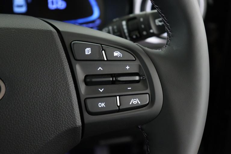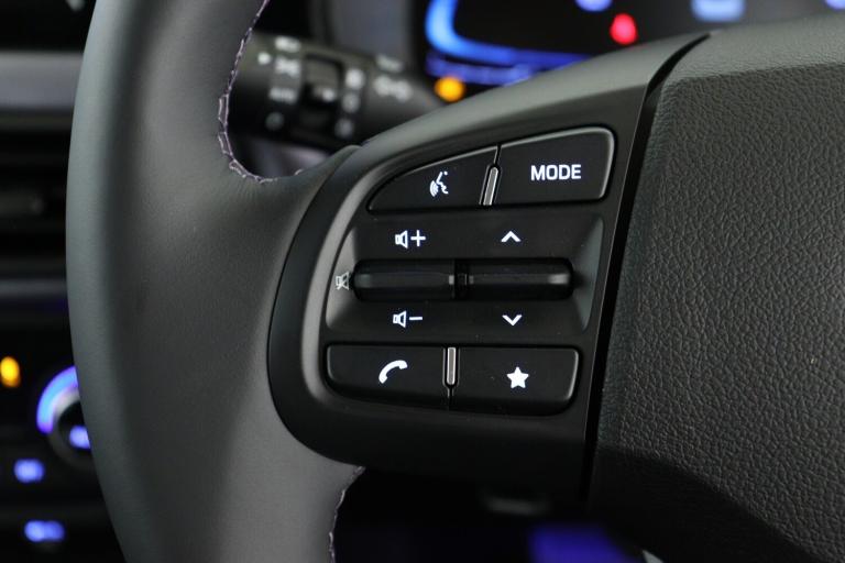 ..8'' Touchscreen satellite navigation including mapcare and LIVE services, Apple car play/Android Auto, Bluelink mobile remote connectivity, Bluetooth connectivity with voice recognition, Cruise control, Driver attention alert system, eCall emergency call system, Forward Collision-Avoidance Assist (FCA) - Pedestrian/Cyclist, Full-width 4.2'' LCD instrument cluster, Intelligent speed limit assist, Lane departure warning system with lane keep assist - LKAS, Lane follow assist, PAS, Rear parking sensors, Rear view camera with guidelines, Roadside assistance, Tailgate, Trip computer, Wireless charging pad, 2 front/2 rear speakers, Front and rear USB-C ports, Front USB connection, Leading vehicle alert (LVA), Steering wheel audio, phone and cruise controls, 1 speed non intermittent rear windscreen wiper, Black finish on B pillars, Body colour door handles, Body coloured bumpers, Body coloured door mirrors, Electric folding door mirrors, Electric front windows, Electric rear windows, Electrically adjustable and heated door mirrors, Flat metal emblem, Front fog lights, Front grille in glossy black, Front intermittent wipers, Halogen bi-function headlights, Headlights inner with Black Blade design, Heated rear window, High beam assist, Indicator light on door mirrors, LED daytime running lights, Privacy glass for rear window, Rear roof spoiler with integrated LED brake light, Rear side wing doors, 12v power outlet - front, 3 seat bench in 2nd row, 60/40 split folding flat to floor rear seats, Air conditioning climate control, Auto light control, Bottle holders in front/rear doors + front centre console, Cabin and luggage compartment interior lighting, Cloth upholstery, Driver + passenger vanity mirrors, Driver's seat height adjustment, Driver/passenger sunvisors with ticket holders, Floor mats, Front door pockets, Front Head Restraints - Vertical and Horizontal Adjustment, Front LED blue mood lighting, Glove compartment, Heated front seats, Heated steering wheel, Height adjustable steering column, Isofix child seat preparation, Leather wrapped steering wheel and gear knob, Metallic grey dashboard finisher with Meta Blue air vent rings, black/purple grey C-Pad and dark metallic garnish console, Rear door pockets, Single front passenger seat, Vertical adjustment rear head restraints, 13'' Rear brake discs, 3x3 point rear seatbelts, Airbags - front, front side and curtain airbags, Anti-lock brake system (ABS), Autonomous emergency braking (AEB) with forward