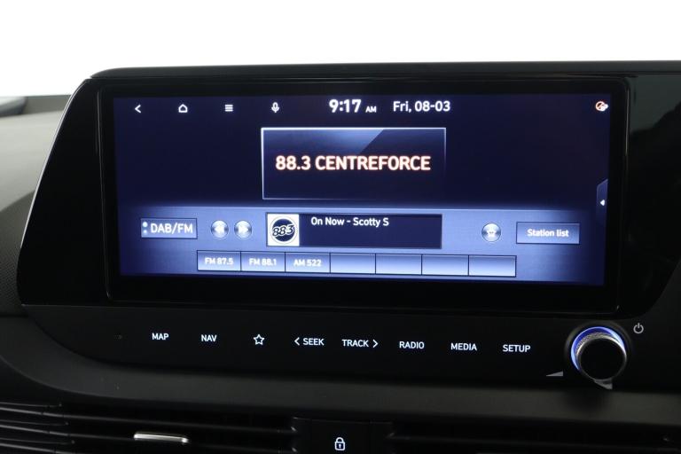 ..10.25'' touchscreen + navigation, 2nd Gen eCall, 8'' Touchscreen DAB Radio with android auto and apple carplay, Front parking sensor, Intelligent speed assist, Intelligent speed limit warning, Lane follow assist, Lane keep assist, MAP OTA updates, PAS, Rear parking sensor, Rear view camera with dynamic guidelines, USB C port front, USB C Port in rear, Automatic headlights with dusk sensor, Electric adjustable heated door mirrors, Electric folding door mirrors, Front grille mesh pattern design, High beam assist, LED 3rd brake light, LED daytime running lights, LED Headlights, LED taillights, Privacy glass - Rear windows and tailgate, Rain sensor, Rear side wing doors, Rear wiper, Repositioned flat metal hyundai emblem, Trailer wiring, 3 seat bench in 2nd row, Adjustable head restraints, Automatic air conditioning, Cloth upholstery, Floor mats, Heated front seats, Heated steering wheel, Leather steering wheel, Multi colour ambient lighting, Single front passenger seat, 3x3 point rear seatbelts, ABS with front and rear diagonally split, Autonomous emergency braking, Child locks on rear doors, Front ventilated disc brakes, Rear solid disc brakes, Tyre pressure monitoring system, 17'' Alloy wheels, Tyre repair kit