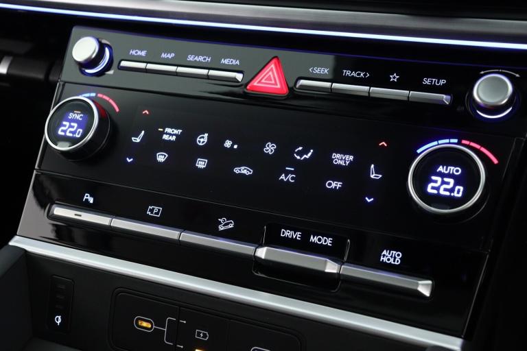 ..12.3'' touchscreen satellite navigation, media centre and google places, Blind spot collision avoidance assist (BCA), Blind spot view monitor (BVM), Bluelink and Wireless Apple Carplay/Android Auto, Bluetooth connectivity with voice recognition, Digital key 2.0, Drive mode selector, Driver status monitor (DSM), Dual wireless phone charging pad, Emergency services call system, Forward collision avoidance assist (FCA 2.0), Front and rear parking sensors, Head up Display, Highway drive assist 2 (HDA 2), Intelligent speed limit assist (ISLA), Lane departure warning system (LDW), Lane Follow Assist 2 (LFA 2), Lane keeping assist (LKA), Low washer fluid warning, Over the air software updates (OTA), Parking Collision Avoidance Assist-Reverse (PCA-R), Power assisted steering, Rear view monitor, Remote smart parking assist, Safe exist assist (SEA), Smart adaptive cruise control with speed control, Smart electric tailgate with hand's free opening function, Surround view monitor, Self levelling suspension, Shift by Wire Gear Selector (SBW), 12.3'' Touchscreen display with satellite navigation, 2nd Row USB C Ports x2 Charging, 3rd Row USB C Ports x2 Charging, Front USB C port 1 charging and 1 data/charging, Premium BOSE sound system, Steering wheel audio,phone and cruise controls, Automatic dimming rear view mirror, Automatic headlights with dusk sensor, Automatic windscreen wipers with rain sensor, Body colour bumpers, Dual glass electric tilt and slide sunroof, Dynamic welcome lights, Electric adjustable/heated/auto power folding door mirrors, Front and rear electric windows, Heated rear window, Hidden rear wiper, High beam assist, LED daytime running lights, LED Headlights, LED indicator lights, LED indicators in door mirrors, LED positioning lights, LED taillights, LED third brake light, Manual rear door blinds, Rear side wing doors, Rear windows and tailgate privacy glass, Roof rails, Solar glass windscreen and front windows, Windscreen acoustic film, Windscreen auto defog function, 3rd row head restraints, Dual zone climate control air conditioning, Electrically adjustable front seats with electric lumbar support, Front head restraints, Front seats with memory, Heated front seats, Heated rear seats, Heated steering wheel, Height and reach electrically adjustable steering column, Leather upholstery, LED interior ambient lighting, Luggage cover, Luggage hooks, Luggage net, Rear head restraints, Single front passenger seat, Split folding (50/50) third row seats,
