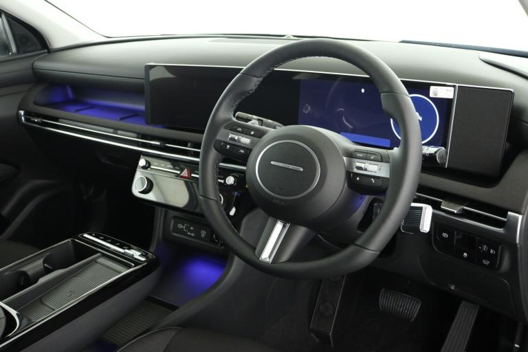 ..12.3'' LCD display with driver's supervision instrument cluster, 12.3'' widescreen navigation with bluelink and mapcare/Google POI, Bluetooth system, Cruise control - smart adaptive speed control with stop and go function, Digital clock, Drive mode selector, Driver attention warning, E-call, Emergency stop signalling system, Forward Collision Avoidance Assist (FCA) - Car, Pedestrian and Cycle, Forward Collision Avoidance Assist Junction Turning (FCAJX), Front and rear parking sensors, Highway Driving Assist (HDA), Hyundai road side assistance, Intelligent speed limit assist III, Lane follow assist, Lane keep assist, Over the air updates(OTA), PAS, Rear camera and guidance parking system, Rev counter, Smart power tailgate, Tailgate open warning light, Trip computer, Trip odometer, Voice recognition, Water temperature gauge, Windscreen washer fluid sensor and warning indicator, Wireless Apple CarPlay/Android Auto, Wireless phone charging pad, Shift by Wire Gear Selector (SBW), 2 front and 2 rear USB-C ports, DAB Digital radio, Krell premium audio system with 8 speakers and subwoofer, Steering wheel mounted audio/phone controls, Adjustable intermittent front windscreen wipers with aero wiper blade, Auto dimming electrochrome rear view mirror, Automatic defog system, Automatic headlights with dusk sensor, Automatic windscreen wipers with rain sensor, Black wheel arches, Body colour bumpers, Body colour door mirrors with integrated indicators, Body colour exterior door handles, Electrically adjustable, heated and power folding door mirrors, Follow me home headlights, Front and rear electric windows with anti-trap mechanism and one touch control, Front fog lights, LED 3rd brake light, LED daytime running lights, LED Headlights, LED rear lights, Positioning Lights - LED, Privacy glass - Rear windows and tailgate, Rear side wing doors, Rear wash/wipe with intermittent wipe setting, Roof rails, Soft touch rear door paneling, Tinted glass with windscreen shade band, Trailer stability assist, 12V power outlets in front console and luggage compartment, 3 seat bench in 2nd row, 40/20/40 split folding rear seat, 64 colours interior ambient lighting, Adjustable head restraints (Up and down), Cupholders in rear armrest, Door courtesy lights, Driver and passenger sunvisors with illuminated LED vanity mirrors, Driver's seat electric adjustments, Dual zone climate control, Front and rear door pockets, Front armrest with storage box, Front centre console and door bottle
