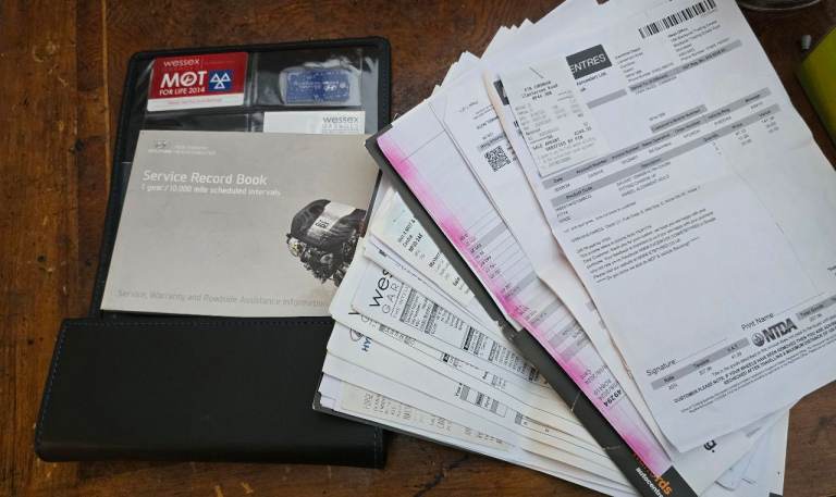 Full service history with stack of invoices