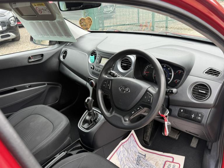 2017 Hyundai i10 SE 1.2 Hatchback 5dr Petrol Auto Euro 6 (87 ps) with fresh MOT and fresh service, new timing chain fitted and water pump, finance available, supplied with 3 months warranty, ULEZ compliant, part exchange welcome, nationwide delivery available, reserve from £99. A reliable and economical automatic hatchback featuring air conditioning, Bluetooth connectivity, DAB digital radio, USB and AUX connections, electric folding heated door mirrors, body coloured bumpers and mirrors, halogen daytime running lights, split folding 60/40 rear seats, rear spoiler with integrated brake light, tyre pressure monitoring system, vehicle stability management, ESP electronic stability programme, Thatcham category 2 alarm, front and rear speakers, steering wheel mounted controls and much more, making it an ideal compact automatic for city driving with low running costs.