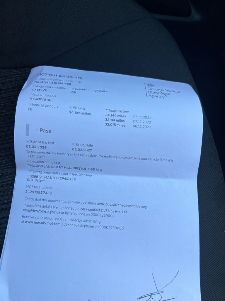 Hyundai i10 2012 1.2 Petrol Ulez free. Very low mileage only 34965 family owned car didn’t drive lot must of time was parked.