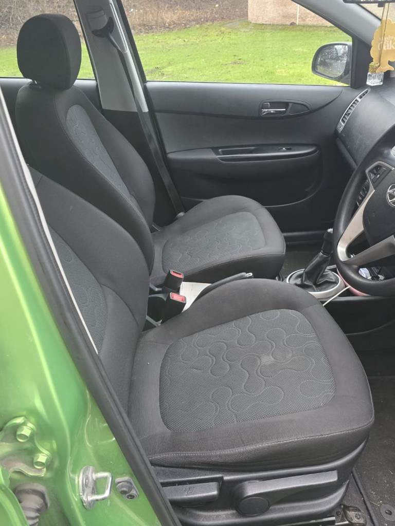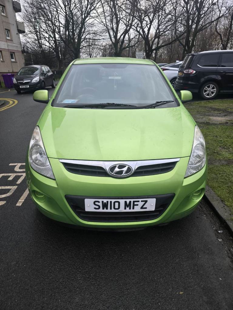 Hyundai i20 with 1.2 (1248)cc engine Green in colour no rips or tears in any of the seats just passed mot on 24th December 2025 so 10 months mot left rear axle replaced for mot in December 2024 new shock absorbers and top mount rubbers both rear calipers replaced have new front brake flexi hoses not fitted yet also have spare rear calipers and I front spare caliper spare mirror glass 4 new tyres in have owned this for last 2 years and its had a lot of work done new front discs and pads reasons for sale getting bigger car as I need wheelchair when out as can't walk far looking for £1100 ovno any inspection welcome any questions call or text me cheers davy