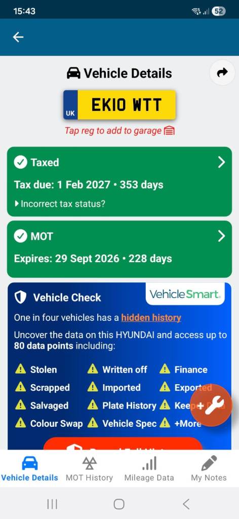 Buy the full report for guaranteed data accuracy, outstanding finance, valuation, milage check & VIN match for £9.99 (normally £19.99)