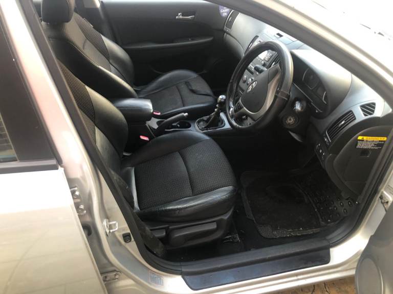HYUNDAI i30. 1.6 PETROL. 5 DOORS. MANUAL. SILVER. 76000 MILES SERVICE HISTORY. 9 MONTHS MOT, AND ALL PREVIOUS MOTS. ALARM. ALLOY WHEELS. ELECTRIC WINDOWS. HALF LEATHER SEATS.