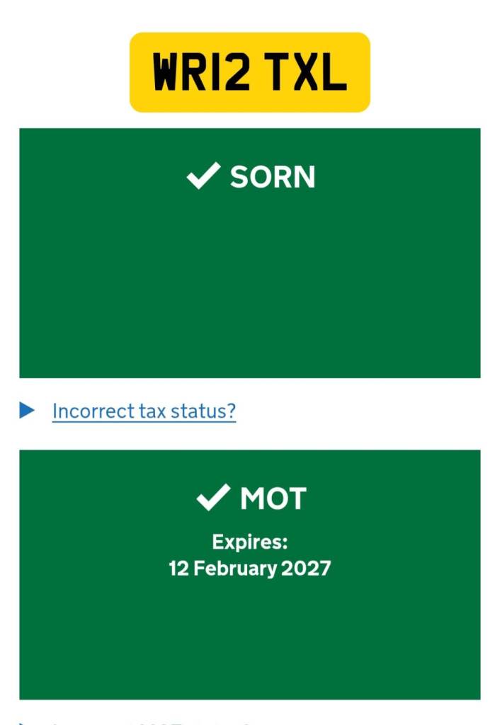 This vehicle has not been reported stolen, scrapped, exported or flagged as unroadworthy.