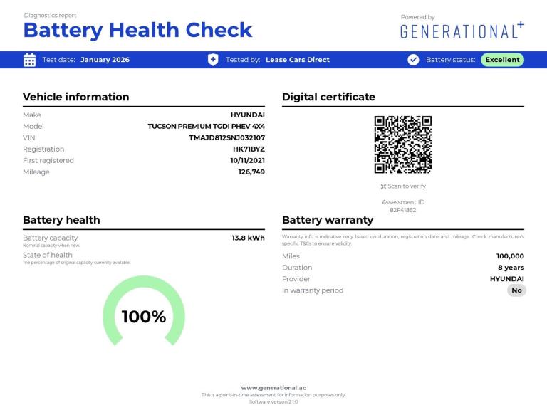 THIS HYUNDAI PHEV IS POWERED BY A 1.6 TURBOCHARGED PETROL ENGINE PRODUCING 261 BHP, PAIRED WITH A SMOOTH AUTOMATIC GEARBOX AND AN INTELLIGENT ALL-WHEEL-DRIVE SYSTEM, MAKING IT A HIGHLY DESIRABLE MODEL. AS A PLUG-IN HYBRID, IT FEATURES A 13KWH BATTERY PACK OFFERING AROUND 30 MILES OF ELECTRIC-ONLY RANGE, IDEAL FOR DAY-TO-DAY DRIVING. COMBINING PETROL AND ELECTRIC POWER DELIVERS EXCELLENT FUEL EFFICIENCY AND VERY LOW RUNNING COSTS. IT IS ALSO EURO 6 COMPLIANT.