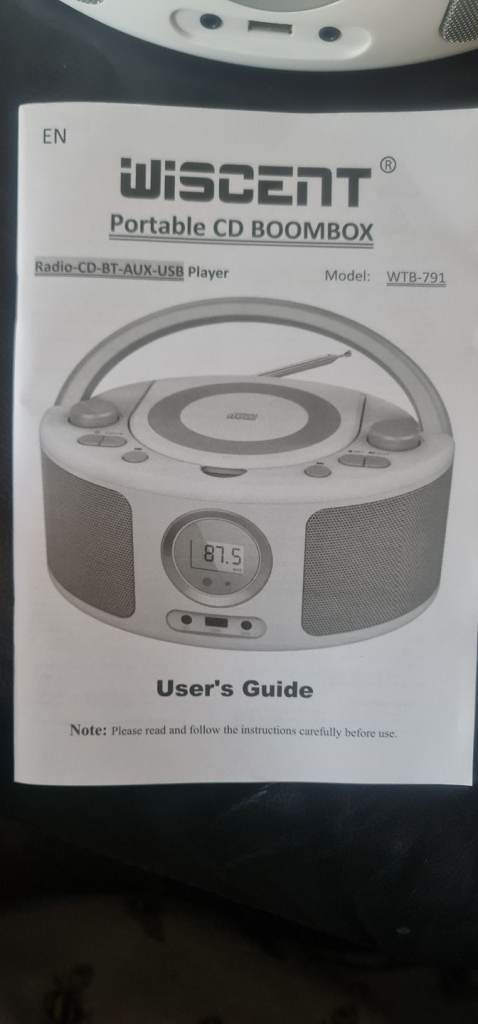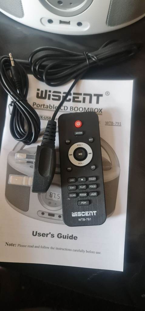 Brand new Wiscent radio/cd boom box. Colour white and silver. very nice for childs room