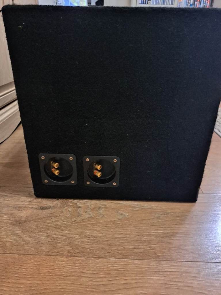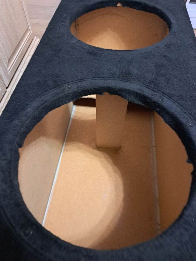 12inch subwoofer custom ported box built by visual ice. The box is in very good condition. Does have a few marks on the carpet. Which doesn't effect the sound.