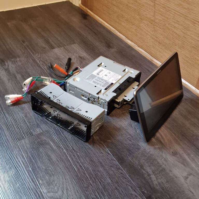 Good working condition, please review photos for condition and included items. This model is ideal for upgrading older vehicles with a single din stereo to a large modern screen with android auto and apple car play.