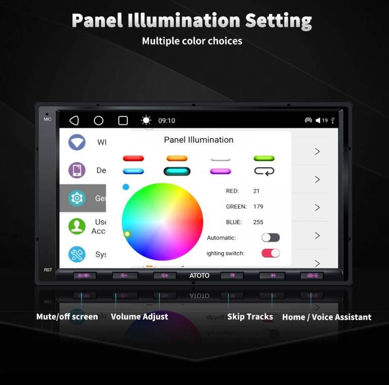 * True 7-inch screen. Typically, dashboard mounting frame suppliers provide double DIN mounting frames with a 174 mm * 98 mm opening. In order to fit into them, the actual screen size of common aftermarket car stereos is limited to 6.75-inch or smaller (false 7-inch). ATOTO is the first manufacturer to introduce true 7-inch car stereos with a minimal screen frame size of 172 mm * 97 mm (fitting the mounting frames commonly available). An extra frame adapter is also included to expand it, if needed, to 178 mm * 101.5 mm.
