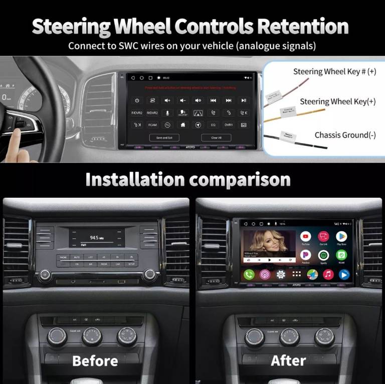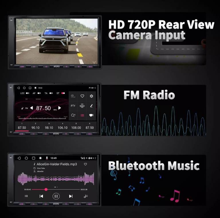* ATOTO A6 PF supports running CarPlay map navigation while playing FM/AM radio/USB music in the background. Be aware that not all car stereos can do this!