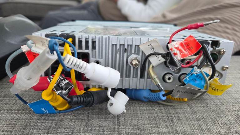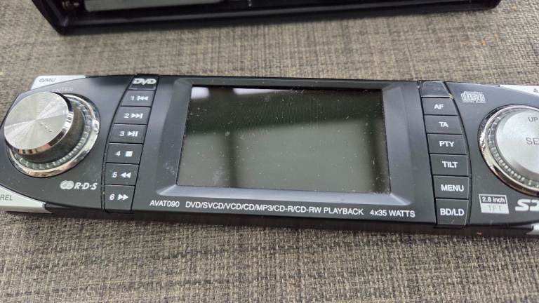 Functions include DVD player, SD card, CD and has parking rear camera connection. Detatchable headmount with case. Please see pictures for any other spec.
