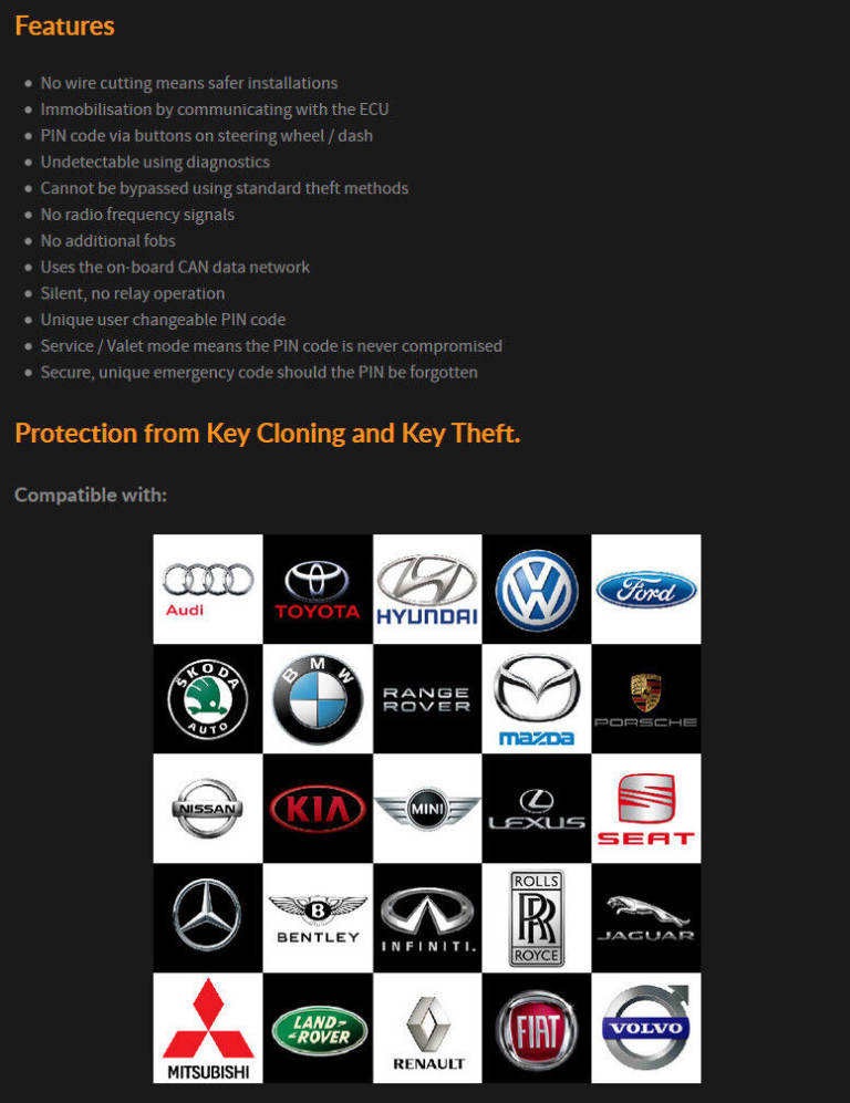 Next generation vehicle security is now Tassa Insurance Recognised Protect against key theft, hacking and key cloning Undetectable to thieves and invisible installation Simply use the existing buttons on your vehicle to enter a unique pin code Effective alternative to a tracker with no subscription costs
