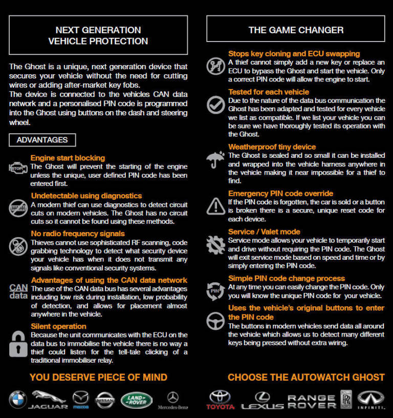 The Autowatch Ghost-II CANbus Immobiliser is the latest in the Ghost series and provides an effective solution to securing your vehicle.