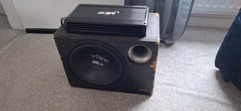 Vibe 400 watts subwoofer (box seen better days, but still working good) no damage or anything on the driver itself. Unsure if it's the original box tbh. Bought it used few years ago.