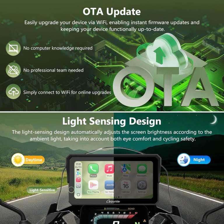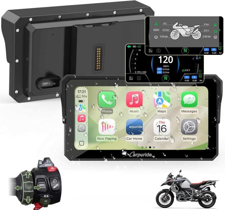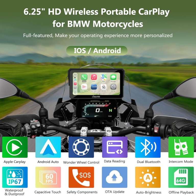 Carpuride W602BS Pro / Carplay Screen for BMW Motorcycles / Native Wonder Wheel Control & Data Reading / Wireless CarPlay & Android Auto / 6.25" Waterproof Touchscreen / OTA / Dual Bluetooth / Intercom / Navi.