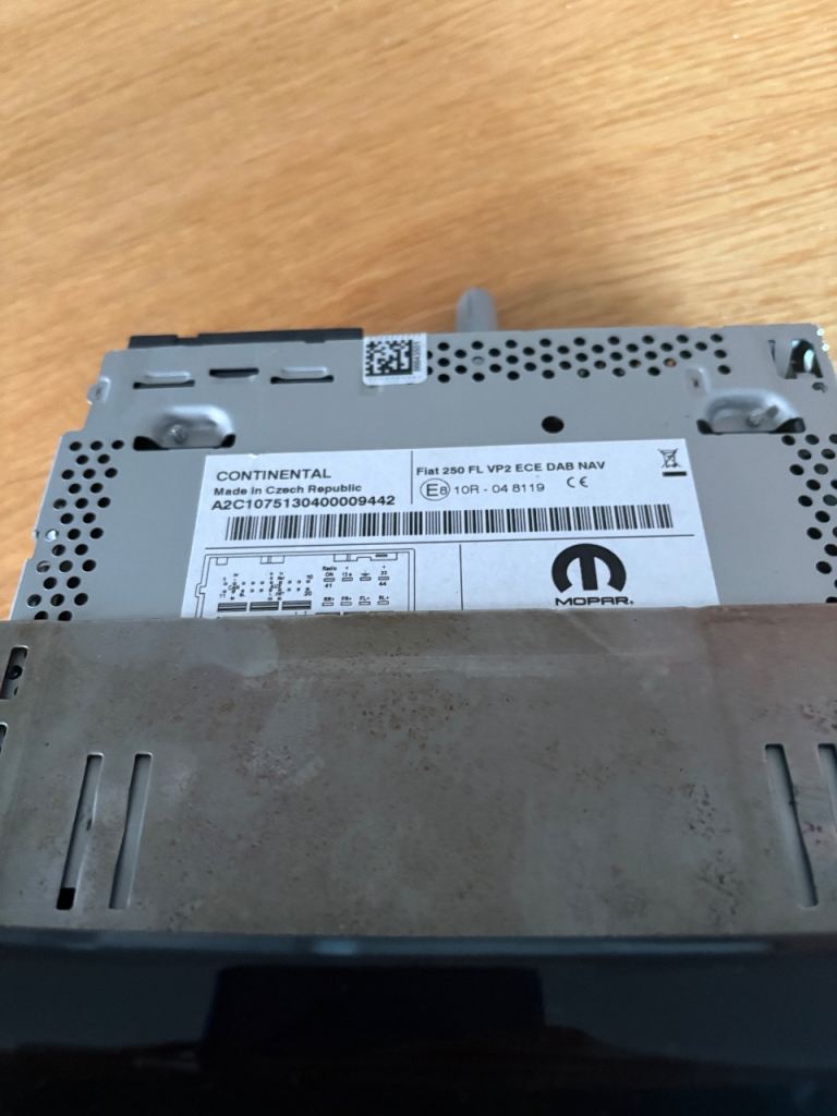 Manufactured by Continental (Mopar unit) – this is the VP2 system with built-in navigation, DAB radio, Bluetooth, media connectivity and phone integration.