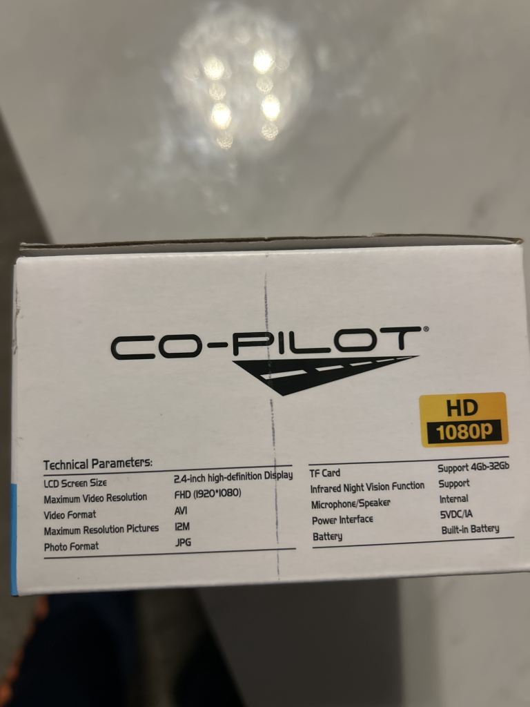 Co-Pilot Dash Cam 12 pixel camera, Night Vision. LCB HD , 2.4 screen.support 4 GB-32 GB memory card.