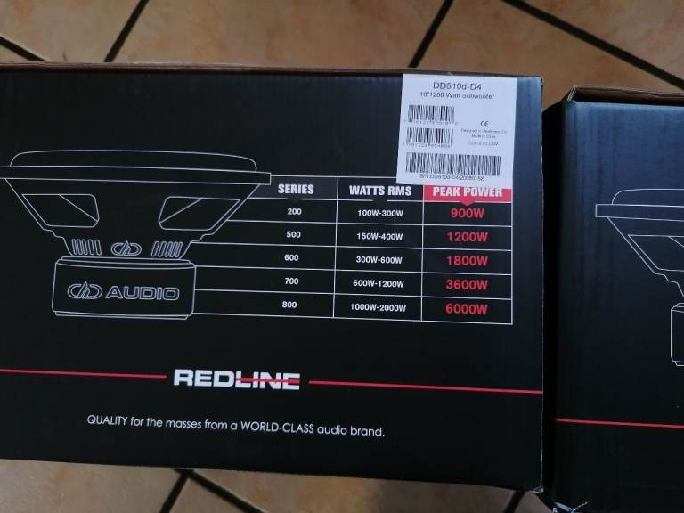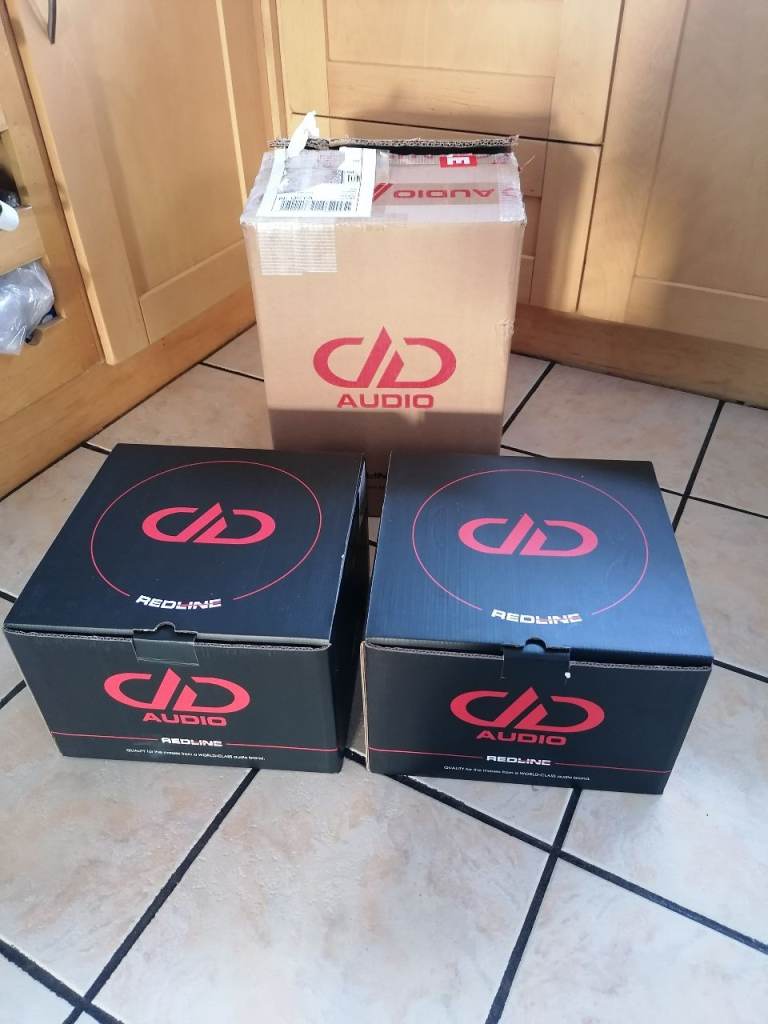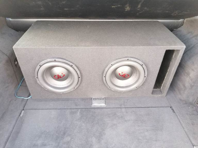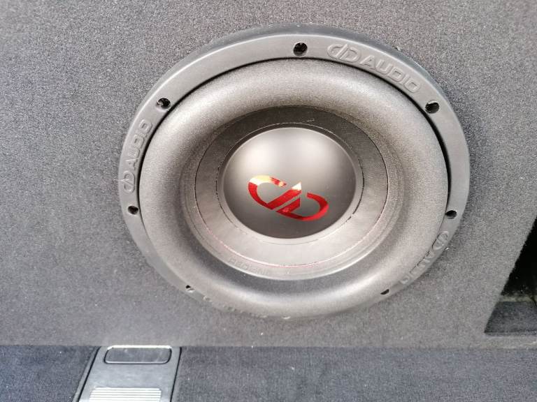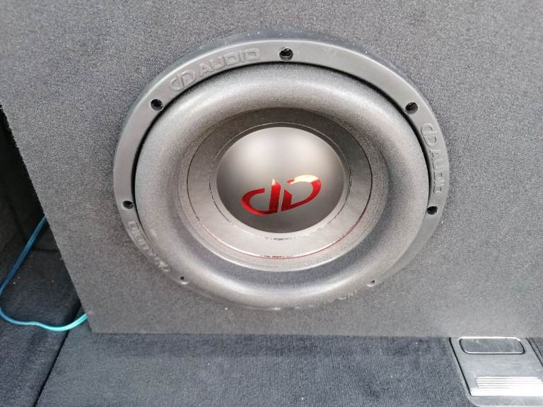 Here for sale are a pair of 10" DD Audio reline subwoofers in a large ported box excellent sounding subwoofers kick deep and low, can be seen working as they are still in the car at the moment, come with original boxes and packaging, only about a month old now they are in as new condition. Each subwoofer is a dual 4 ohm so each is wired to 2 ohm and then both wired together to give 1 ohm load. They are rated at 400rms per subwoofer giving you a total of 800rms they are known to handle more then rated.