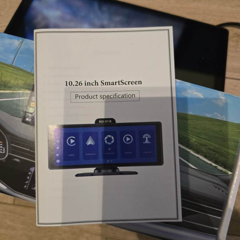 Excellent condition front and rear dash cam. Front screen used for a week size 10.26inch. Comes with box and all wires and stands.