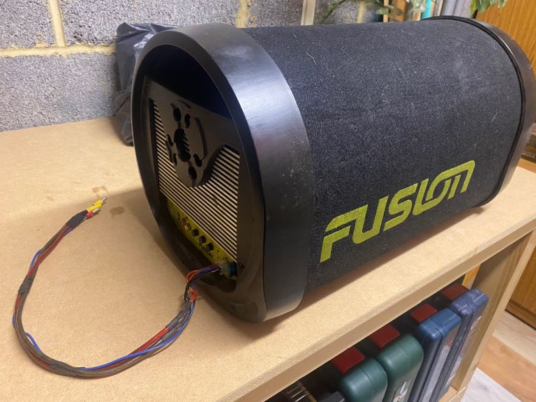 Fusion EN-AT1100 10in car subwoofer & amplifier enclosure. A self contained bass box that is RCA plug and play ready.