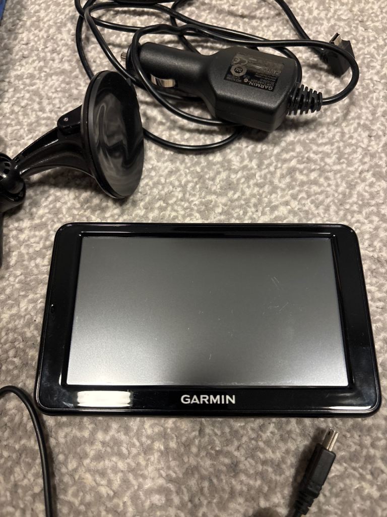 Garmin nuvi 2595 satellite navigation, with in car charger, usb cable, windscreen device holder, and instructions