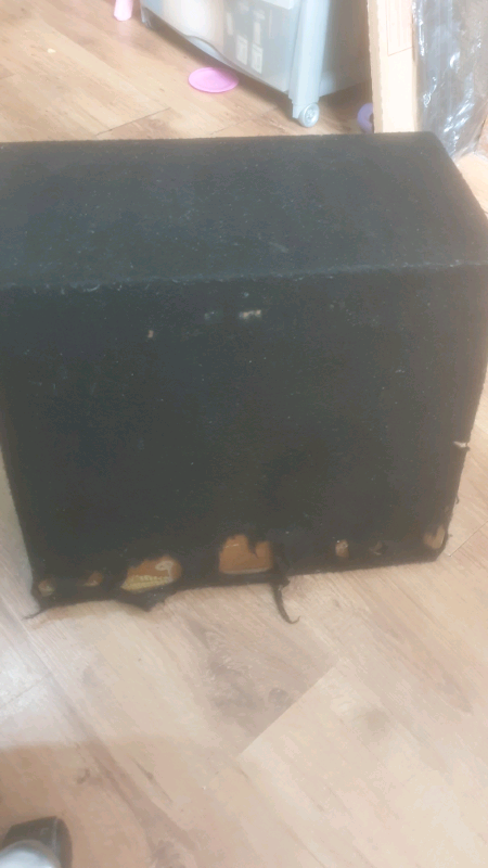 Pioneer 12 inch sub woofer in box carpet is a bit worn/torn on back