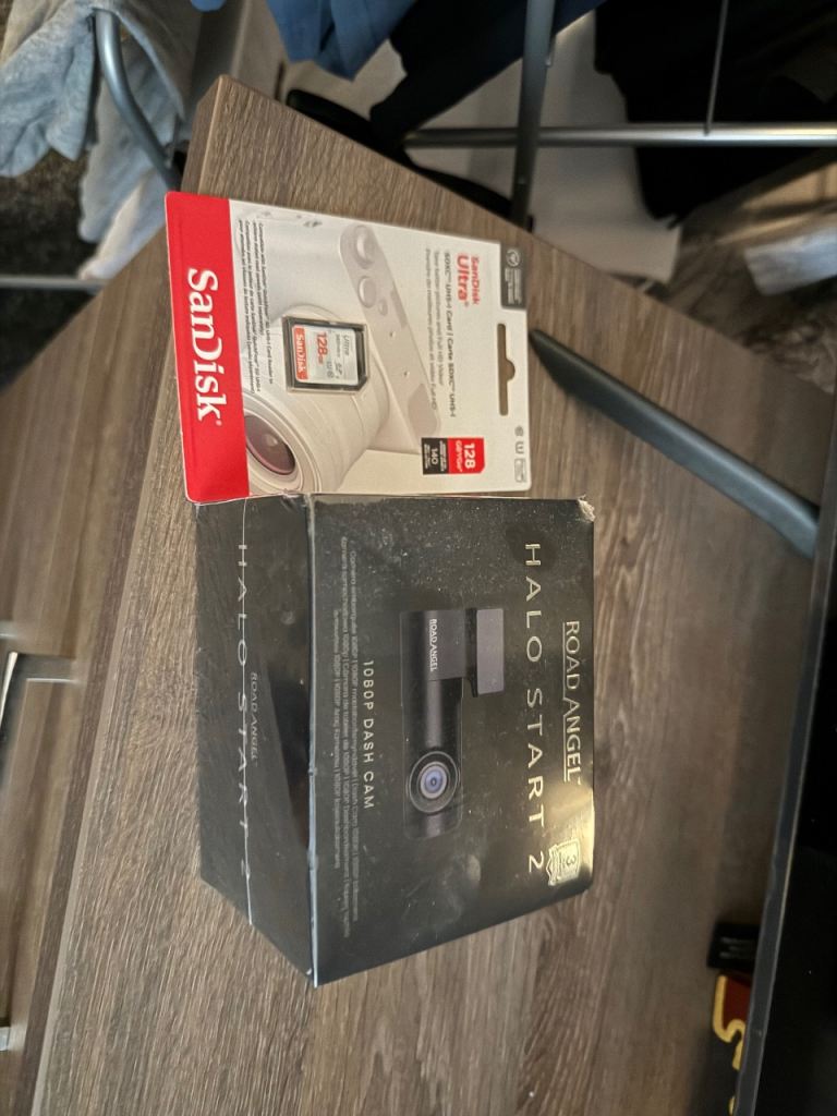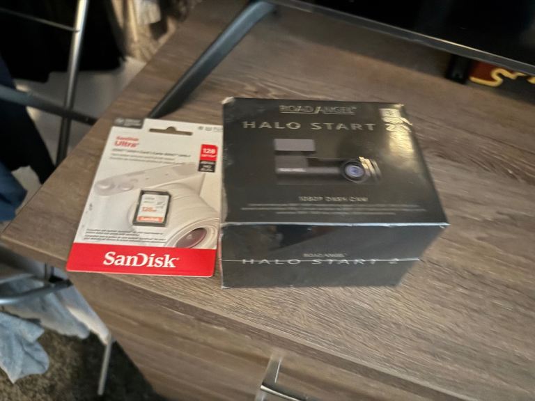 Road angel halo start 2 dash cam and 128gb memory card, still in box, not opened, decided to go with nextbase instead