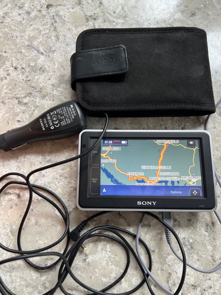Here we have a Sony SatNav model Nav-U U82 with case. It has hardly been used (if ever) and also comes with the car adaptor. I have just tested the satellite acquisition and all is well. Even though it is an early model it works well and is useful if your car isn't equipped with a SatNav. Bargain at just £30.
