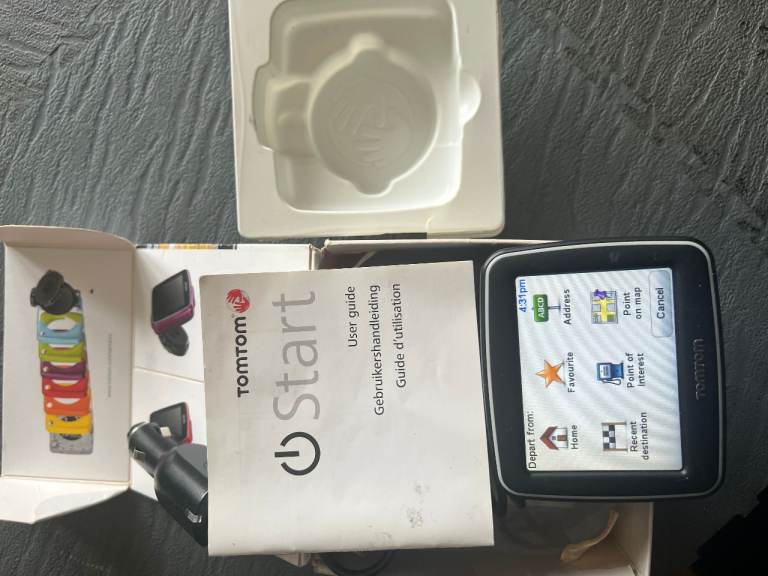 TOM TOM START NAVIGATION BOUGHT FOR £90 IN GOOD WORKING CONDITION NOT NEEDED BECAUSE MY NEW CAR HAS A BUILT IN NAVIGATION. VERY HANDY ON TRAVEL AND FINDING DIRECTIONS WHILE DRIVING OR WALKING BECAUSE IT HAS A CHARGEABLE BATTERY FOR WHICH A LEAD IS INCLUDED TO CONNECT TO CIGARRETTE LIGHTER SOCKET IN YOUR CAR.