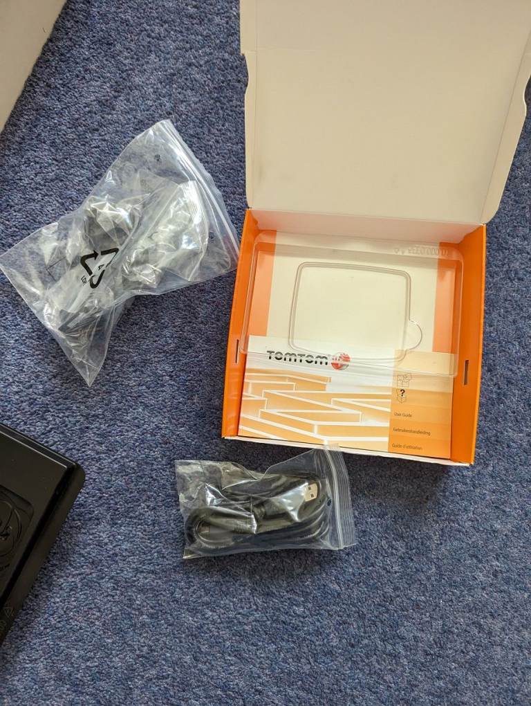 With original box, charger cable, cigarette lighter charger cable and TomTom pocket bag