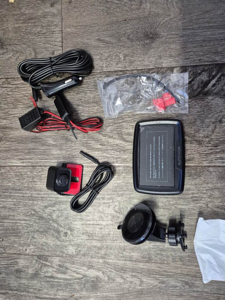 Includes USB charger and adapter stand, Product Card Credit Card with Europe and North America (I don't believer this has ever been used), Remote (where the batteries have leaked inside, could be cleaned though), TomTom Carry Case, Car Charger and Memory Card.