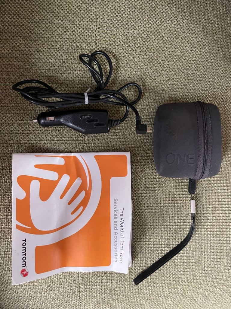 TomTom sat nav with the cable, case and instructions.