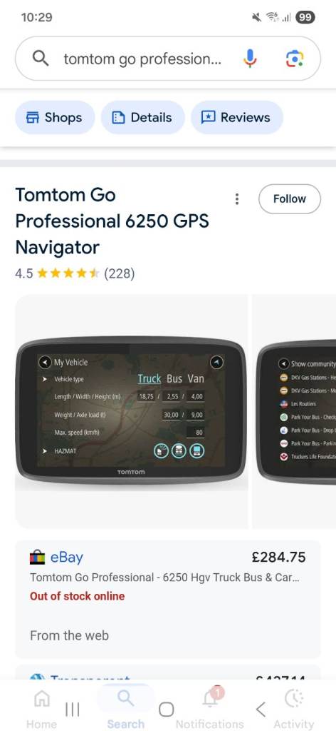 FOR TRUCK AND COACH DRIVERS TO PLAN ROUTES THAT AVOID LOW BRIDGES/WIDTH/WEIGHT RESTRICTIONS. FANTASTIC PIECE OF KIT 5 MONTHS OLD. CONNECTS TO WIFI FOR FREE UPDATES, PLAN ROUTES WITH EASE ALL OVER THE WORLD. COMES WITH ALL NECESSARY LEADS AND HOLDERS. WORKS PERFECTLY AND HOLDS A CHARGE. THIS IS A BARGAIN FOR ANYONE NEW TO DRIVING LARGE VEHICLES. ALSO HAS BLUETOOTH. I AM LOCATED IN HAZEL GROVE STOCKPORT.