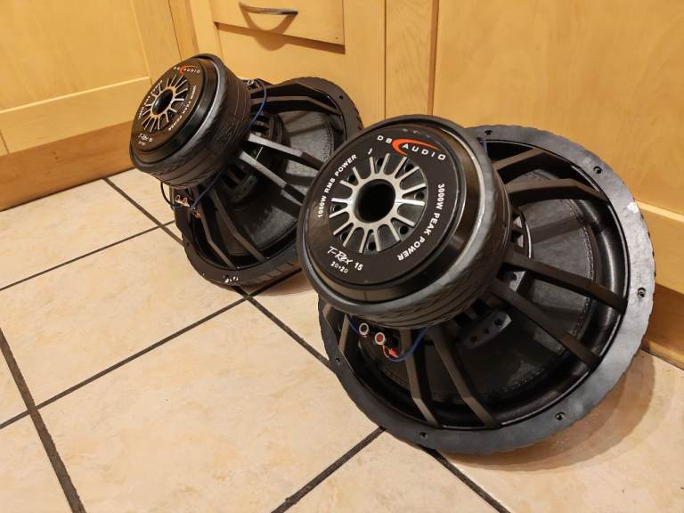 Here for sale are a pair of DB Audio 15" subwoofers in custom box full working order, kept in good condition and lightly used, selling due to a system change these are currently still in the car and a full demo will be given these kick hard and deep!