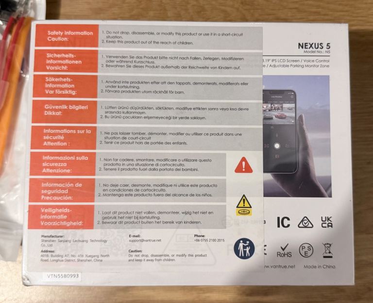 VANTRUE nexus 5 dash cam