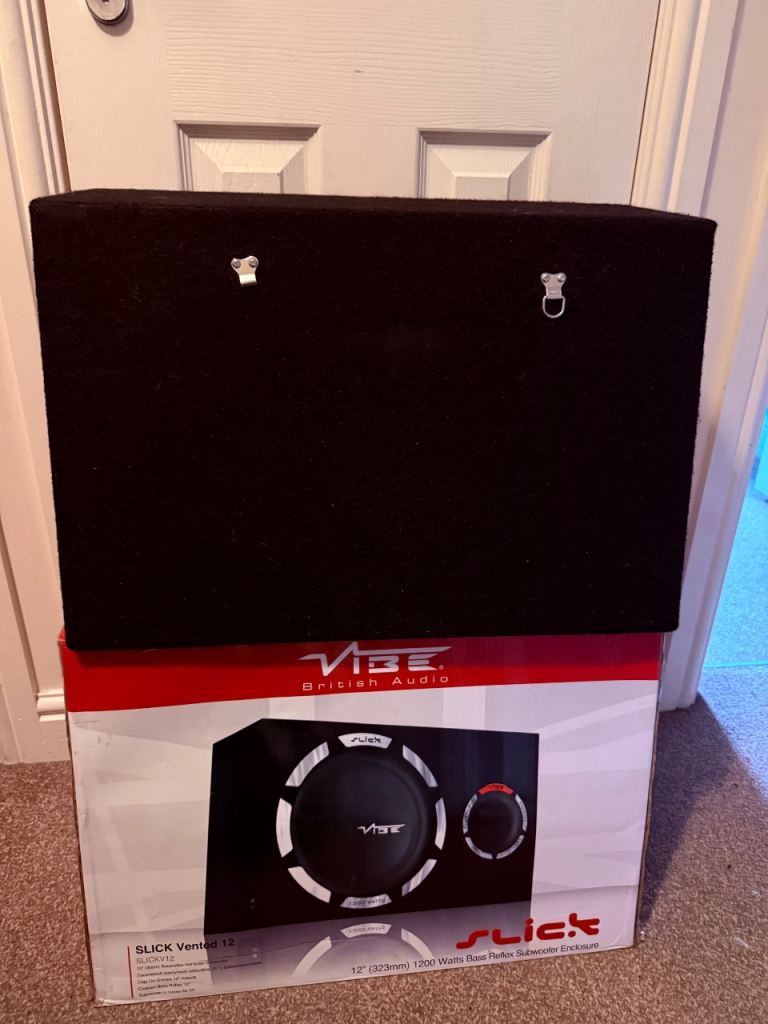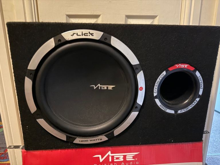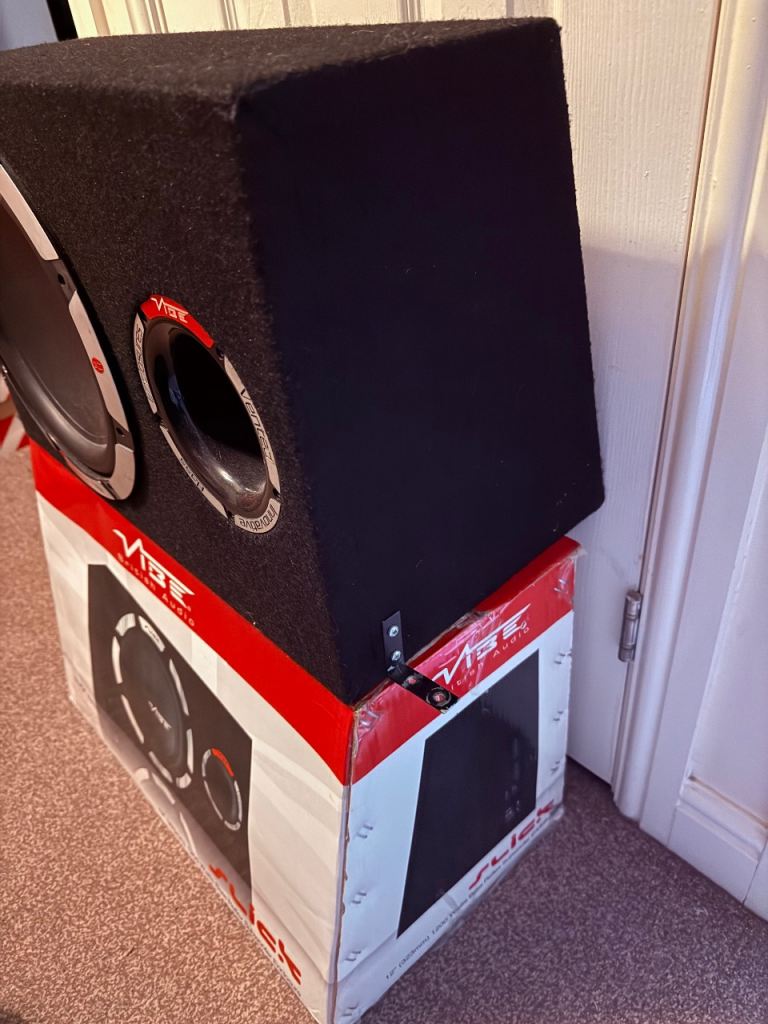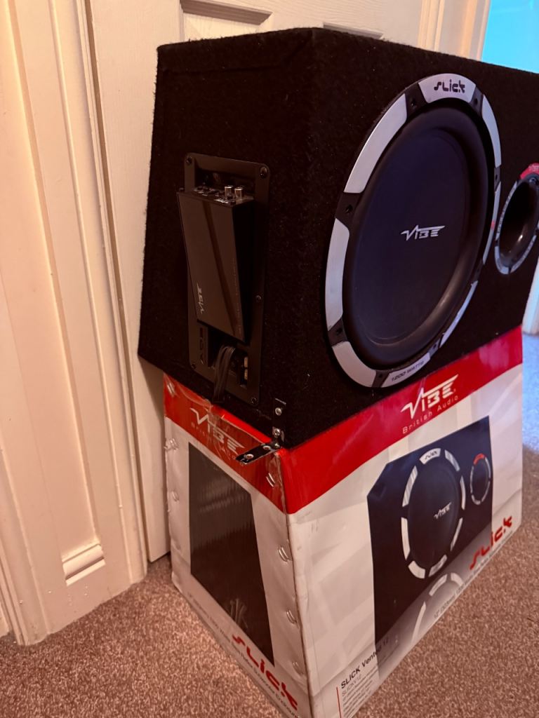 Vibe Slick 12” 1200 watt subwoofer & amplifier with original box & packaging! Excellent condition, perfect working order & used in a smoke free car/home. Paid £300 new & only used for a year. I’ve added a photo of the wiring kit you would need to buy. Collection Wymondham or possible local delivery £150 ono