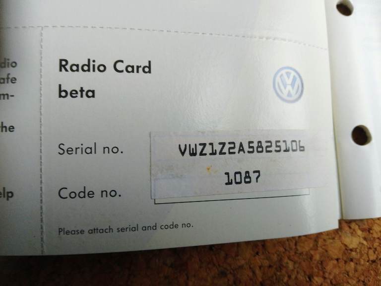 Posting for 11+ yearsVW Beta Radio Cassette + Manual + Code