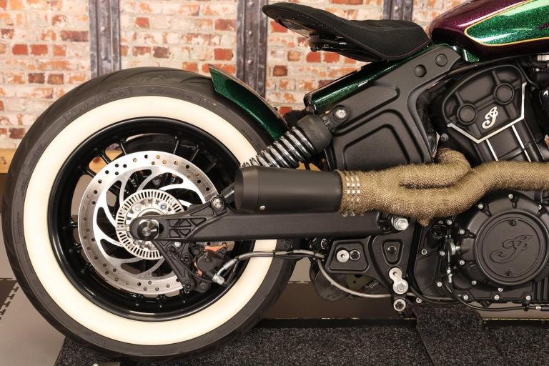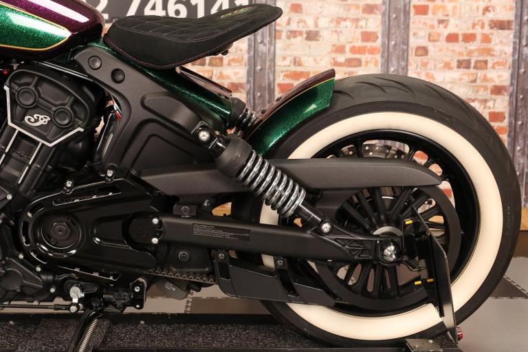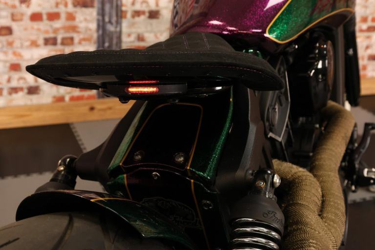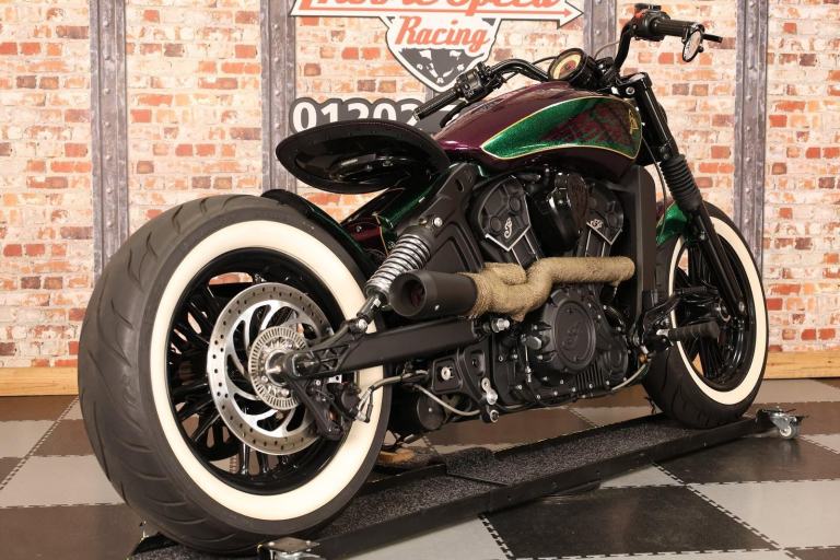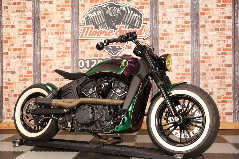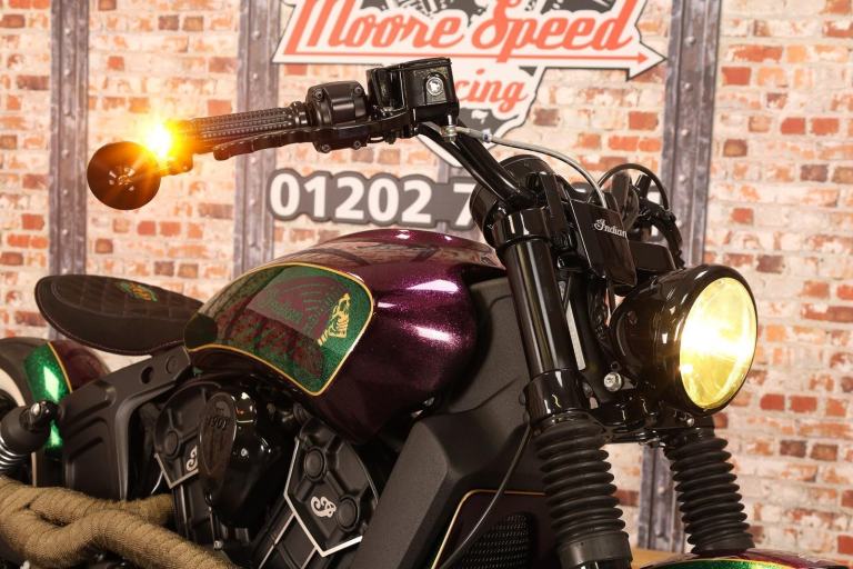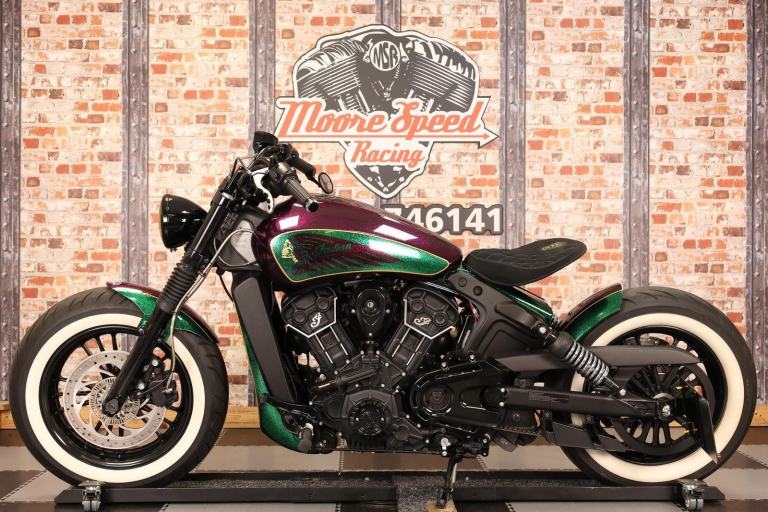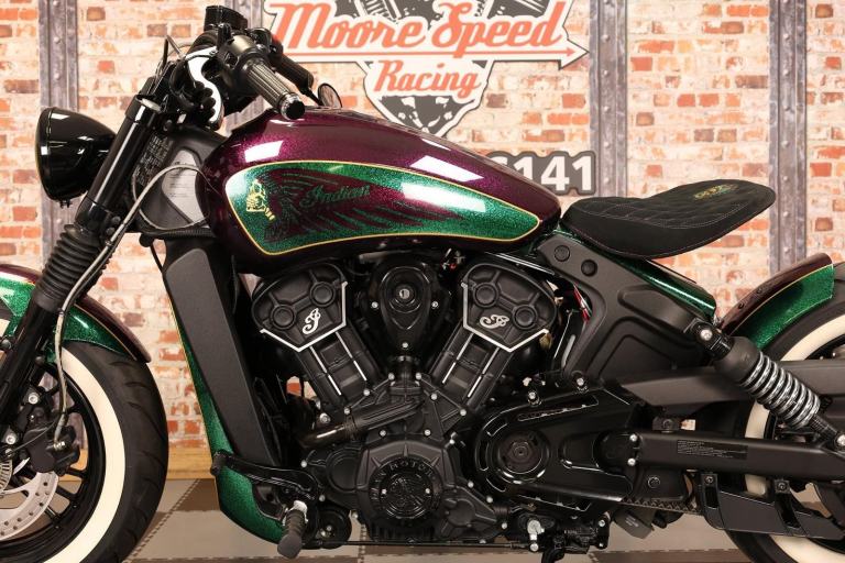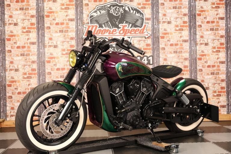 Many of the parts on this bike are created or adapted here at Moore Speed Racing by our technicians, who have vast experience creating these show-stopping Indian Scout custom machines.