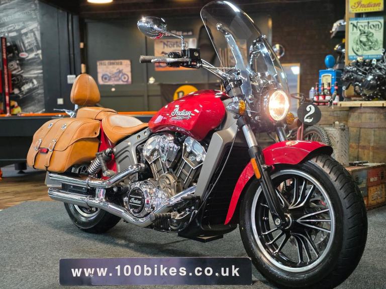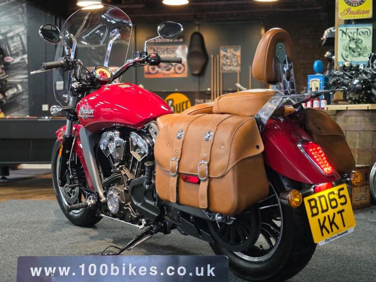 2016 Indian Scout 1133cc in Red with only 2,000 Mile's. What a lovely bike. Very Low Mile's & Fantastic spec. Comes with £1,500 worth of Indian Leather Panniers, Sissy Bar and Rack, Screen, Vance & Hines Exhausts. Easily £3,000 worth of Accessories. £7,995