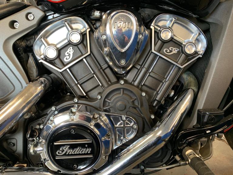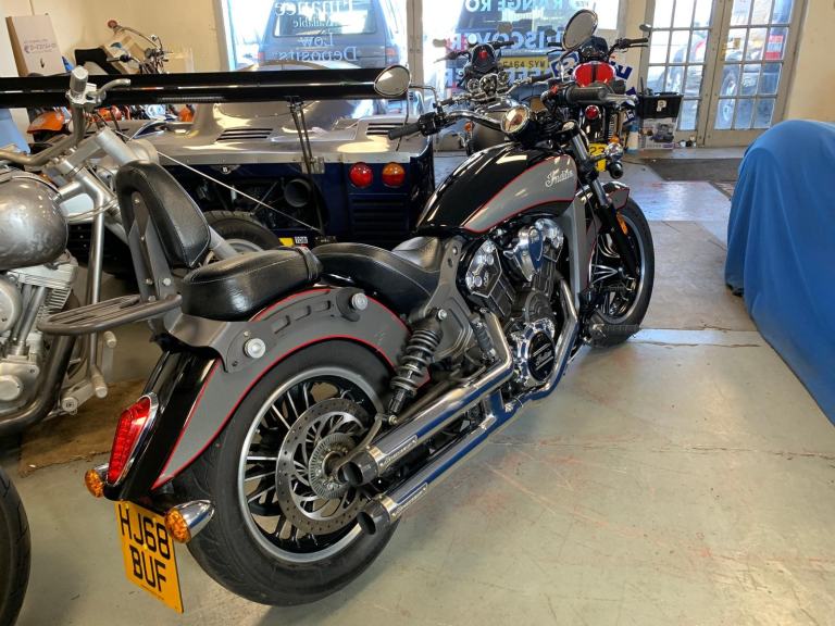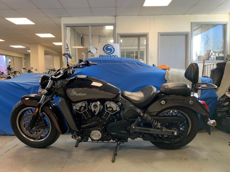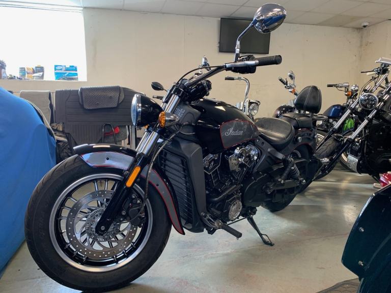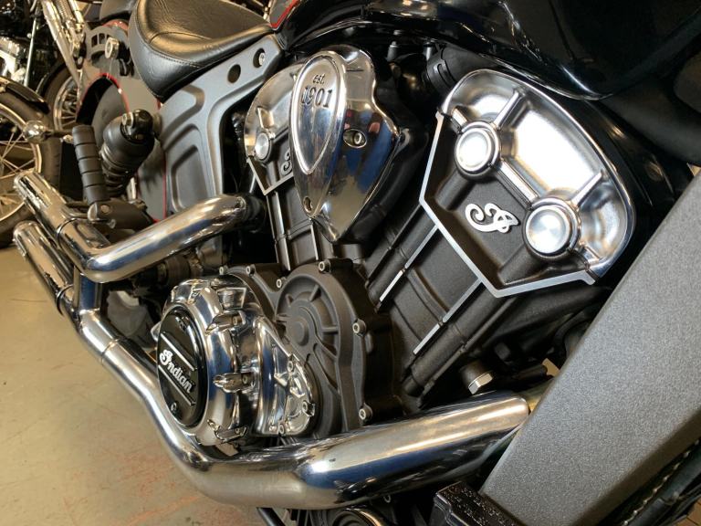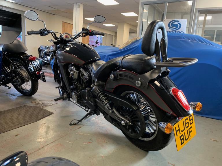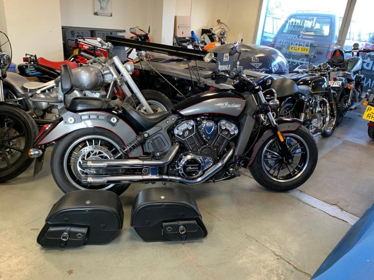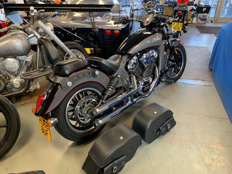 2018 Indian SCOUT 1133 cc (ABS MODEL) ROADSTER FITTED WITH MANY DESIRABLE EXTRAS INCLUDING A PAIR OF SWEET-SOUNDING CRUSHER STAGE 1 PIPES AND TOP QUALITY VIKING REAL LEATHER DETACHABLE SIDE PANNIER AND THE REAR CARRIER WITH SISSY BAR AND PASSENGER BACKREST PAD. AND ONLY HAD 2 CAREFUL PREVIOUS OWNERS FROM NEW !!