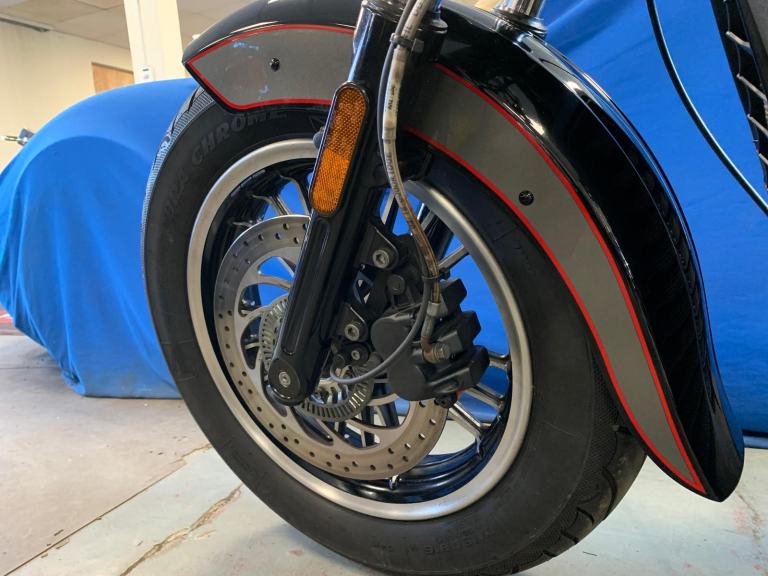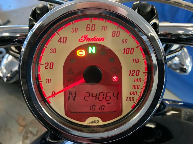 THIS IS A TRULY REMARKABLE RUST / CORROSION FREE SHOWROOM QUALITY SPECIMEN THAT HAS ONLY COVERED 24.000 MOSTLY EFFORTLESS DRY WEATHER TOURING MILES BACKED BY A TRULY IMPECCABLE FULL AND RIGHT UP TO DATE INDIAN MAIN DEALER SERVICE HISTORY INCLUDING JUST HAVING HAD THE VALVE CLEARANCE SERVICE DONE. ALSO, THE STEERING HEAD & WHEEL BEARINGS WERE REPLACED ON ITS LAST SERVICE, LESS THAN 1000 MILES AGO, DONE BY THE INDIAN MAIN DEALERS !!