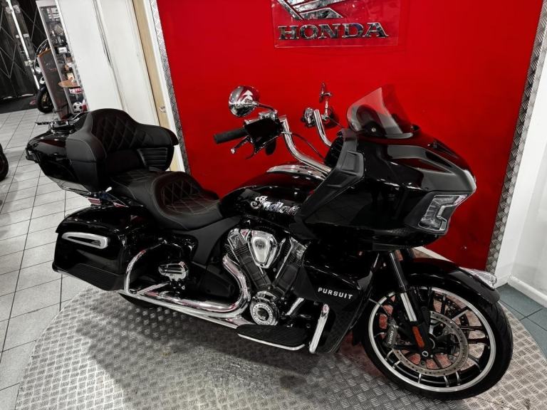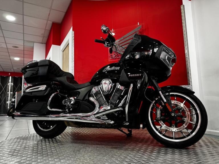 Experience effortless long-distance touring with the Indian Pursuit a premium American V-twin built for riders who want power, comfort and serious road presence. Finished with the bold, unmistakable styling that defines this Pursuit model pairs the liquid-cooled PowerPlus engine with smooth, confident handling and a host of rider-focused technology including a large touchscreen display, integrated navigation, cruise control and high-quality audio. Designed for both spirited weekend rides and effortless cross-country touring, the Pursuit Limited offers heated grips, generous luggage capacity and a refined, comfortable riding position. Whether carving through countryside roads or cruising the motorway, this bike delivers the perfect blend of performance, luxury and unmistakable character.